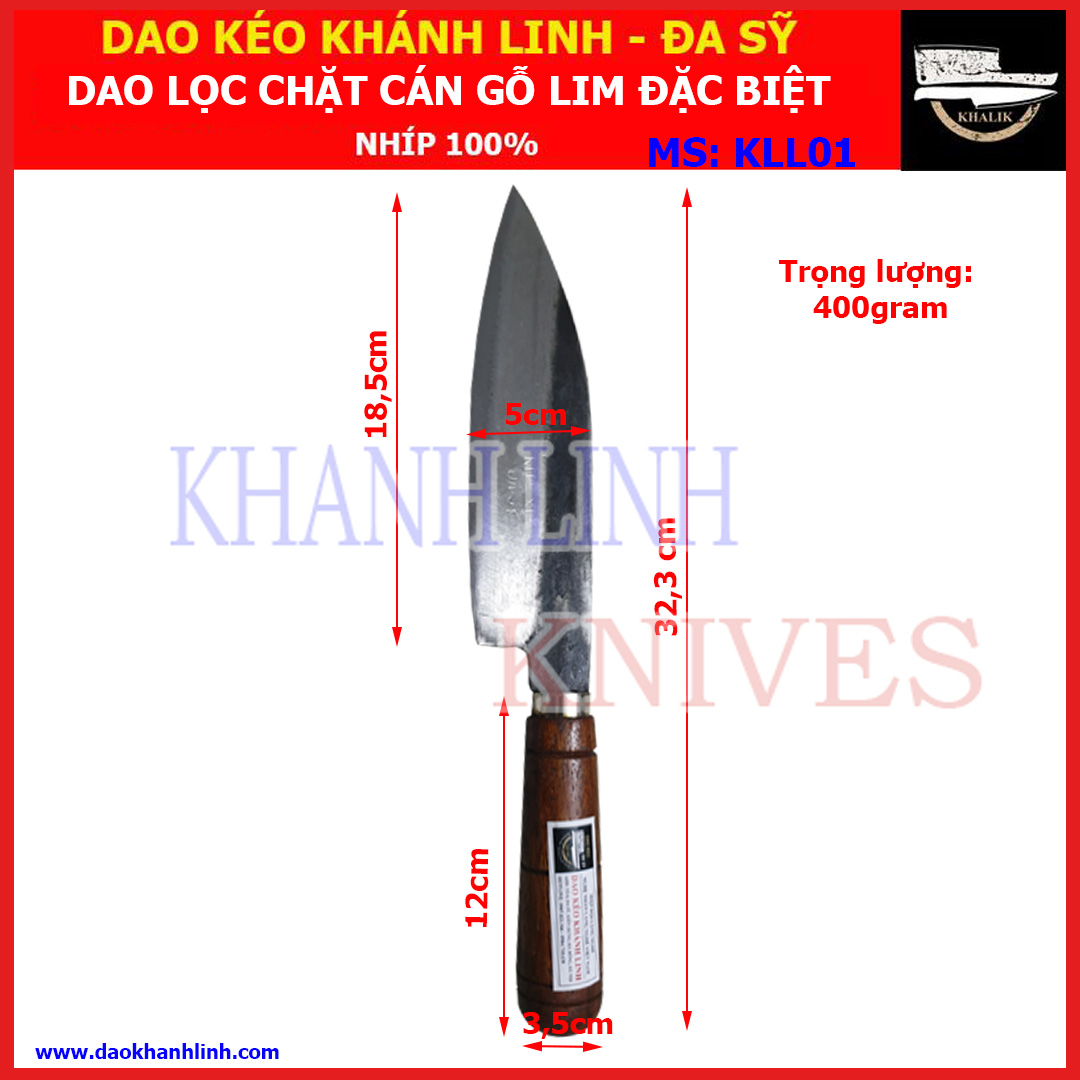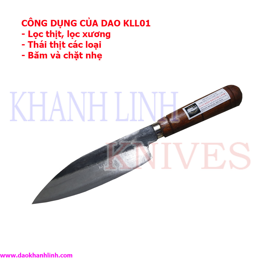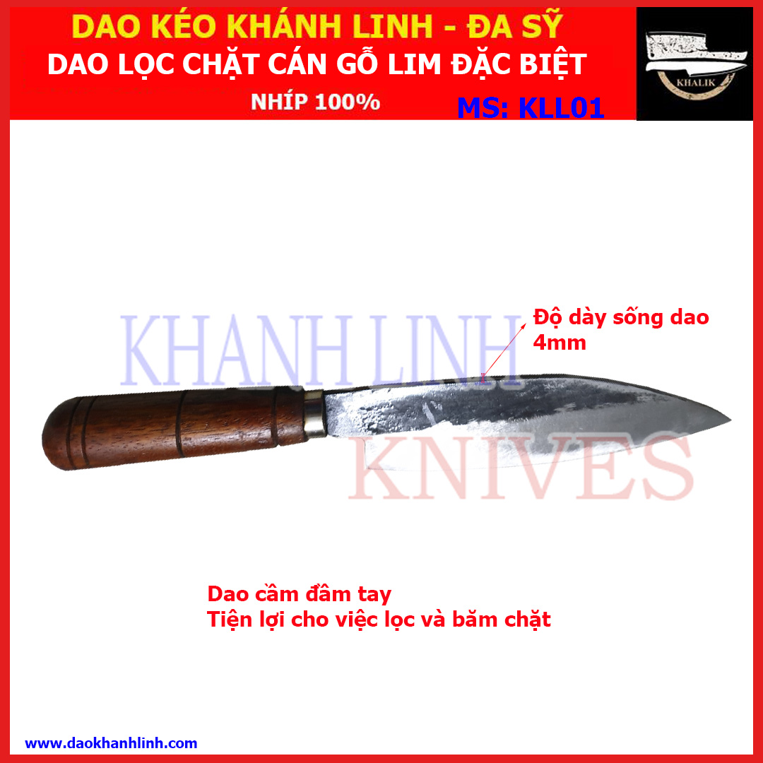 Dao nhọn đa năng (lọc thịt, thái, băm, chặt) bằng nhíp xe 100%, cán gỗ lim - Dao Khánh Linh - Đa Sỹ KLL01