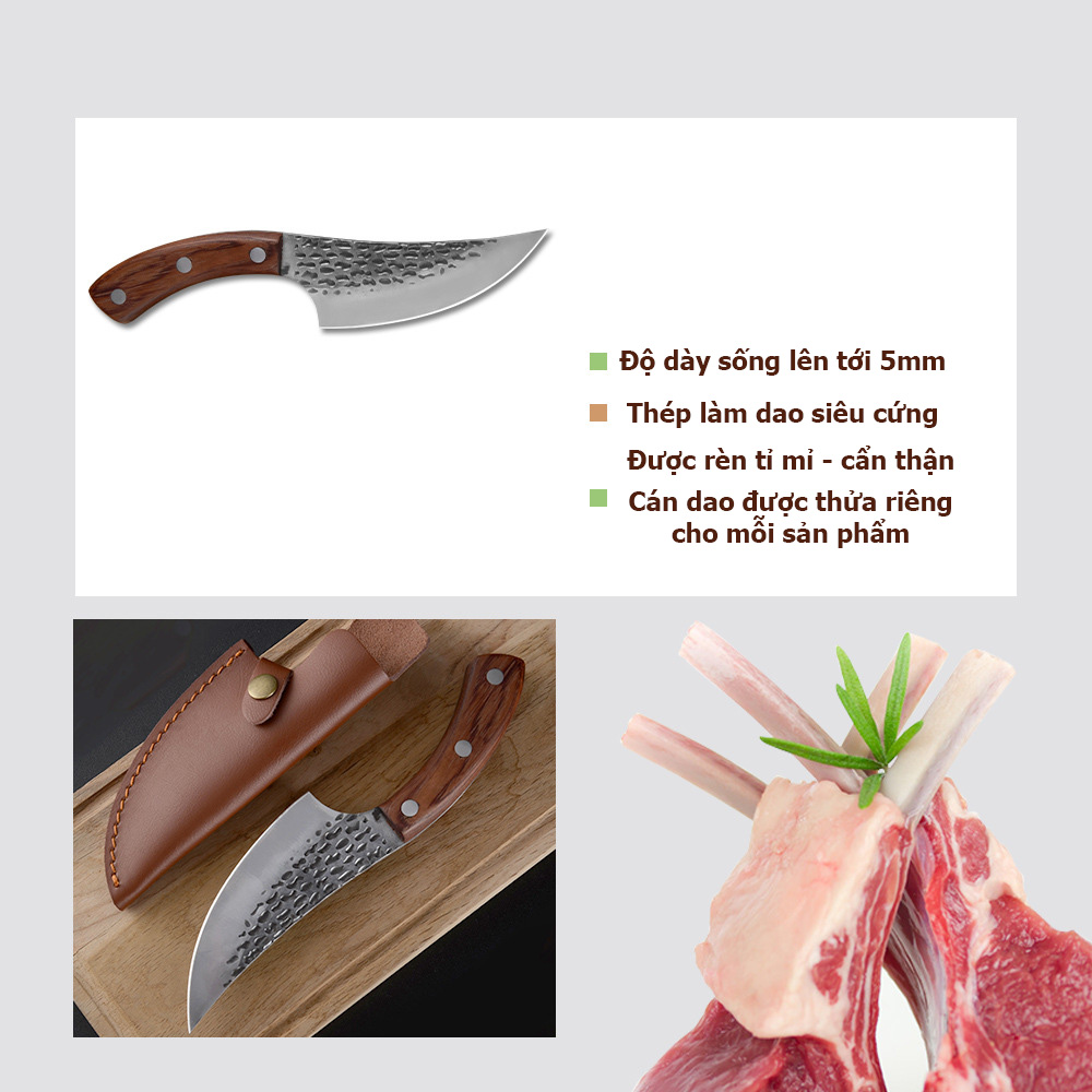 [Chất liệu] Thép Cr13MOV (loại thép chuyên làm dao Nhật, thép siêu cứng, sắc bén), tay cầm bằng gỗ cẩm lai đỏ