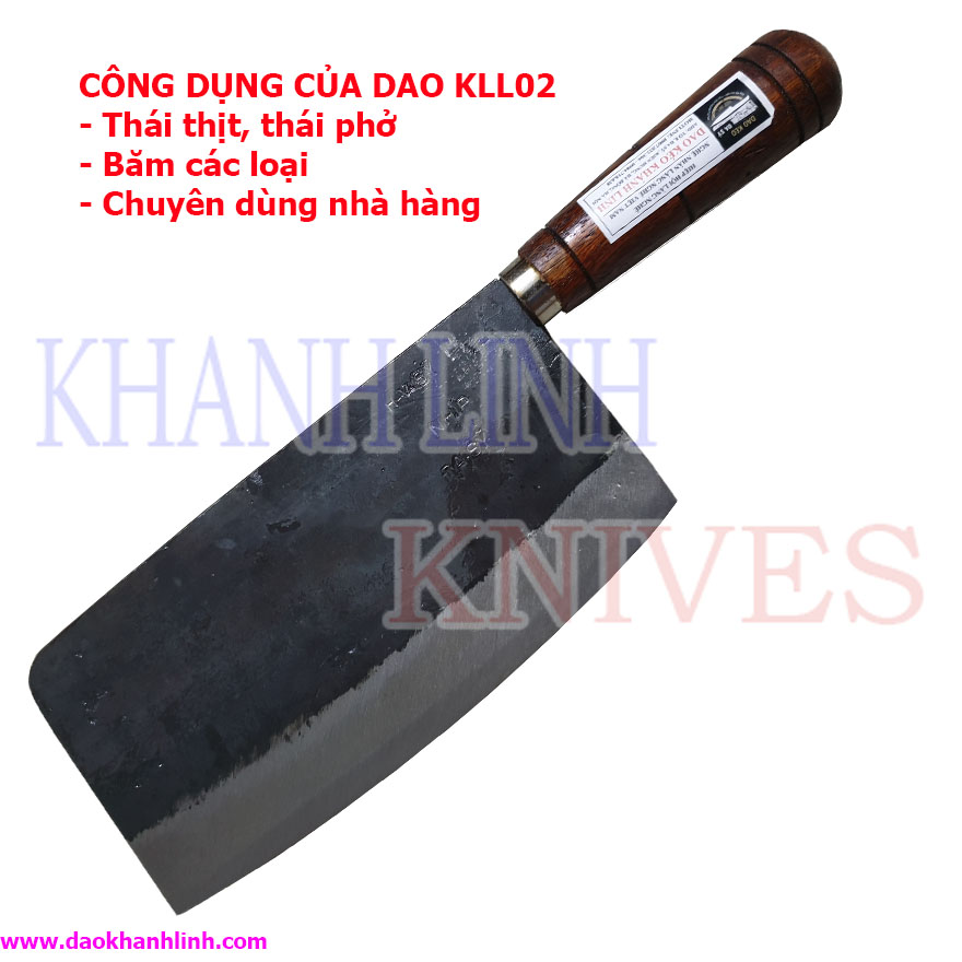 Dao thái nhà bếp, dao phở thái bằng nhíp xe 100%, cán gỗ lim - Dao Khánh Linh - Đa Sỹ KLL02